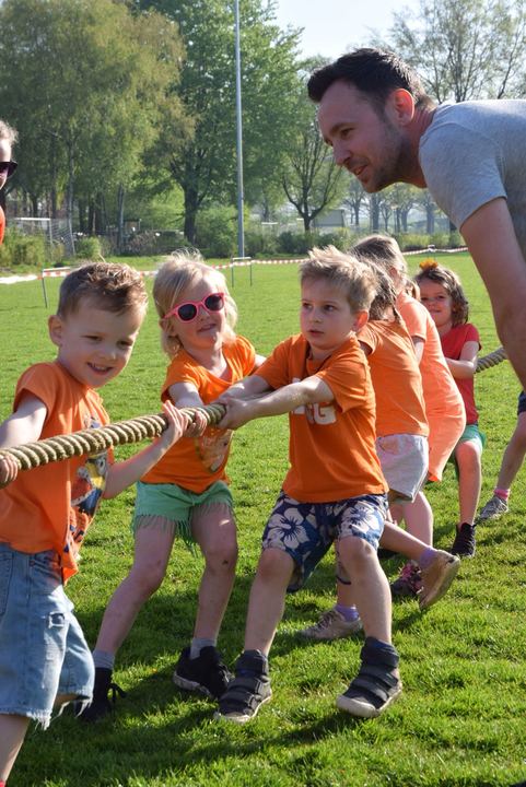 Op de velden van korfbalclub D.O.T. werd gisteren voor de vierde keer de Giga Kangoeroe Klupdag gehouden, een sportdag voor kleuters. Ideaal voor scholen, want ze hoeven niets te organiseren en de dag is ook nog eens gratis. Lieke Mulder 15-05-18, 13:33 Op de velden van korfbalclub D.O.T. werd gisteren voor de vierde keer de Giga Kangoeroe Klupdag gehouden, een sportdag voor kleuters. Ideaal voor scholen, want ze hoeven niets te organiseren en de dag is ook nog eens gratis. "Door die tunnel kruipen, dat was leuk! En nu gaan we de bal gooien." De vijfjarige Jax, leerling van basisschool Pius X, zit met een paar klasgenootjes op het kunstgras klaar voor het volgende spelletje: een bal in een hoge korf gooien. Net deed hij al mee met skippieballen, op klossen lopen, door de tunnel kruipen en samen met drie andere kleuters een bal door een vierkant houten labyrinth sturen. Dat laatste was nog niet zo makkelijk. Het komt aan op samenwerken bij dat labyrinth, en dat is niet de sterkste kant van veel kleuters. Korfbal Jax is vandaag een van de 520 deelnemertjes aan de Giga Kangoeroe Klupdag, op de kunstgrasvelden van korfbalvereniging D.O.T. aan de Rusheuvel. Die houdt de sportdag dit jaar alweer voor de vierde keer. Wouter van Aanholt van de club: ,,We willen kinderen zo bekender maken met korfbal en met onze vereniging. Veel spelletjes hebben met korfbal te maken, maar veel ook niet. Het is leuk als ze spelenderwijs kennis maken met de sport, maar het gaat er vooral ook om dat ze een leuke dag hebben." Door de knieën 140 studenten van het Koning Willem I College uit Den Bosch en het Hooghuis in Oss begeleiden de groepjes. Grote jongens en meiden tillen de kleutertjes hoog in de lucht zodat ze de bal in de korf kunnen gooien, gaan door de knieën om uitleg te geven en loodsen kleutertjes die moeten plassen richting wc. Ook helpen 25 leden van D.O.T. vandaag mee. Wij begrijpen wel dat deze sportdag elk jaar groter wordt' Carla van DIjk Jax zijn juf, Carla van Dijk, staat samen met haar collega Hanneke Liefkens ontspannen toe te kijken. ,,We doen met onze school voor het eerst mee. Wat opvalt? De dag is echt goed georganiseerd." Ze lacht: ,,Wij begrijpen wel dat deze sportdag elk jaar groter wordt. We hoeven zelf niets te doen en veel van die jongens en meiden, zeker die van de sportopleiding van Willem I, zijn heel leuk met de kinderen." En dan is de kleine Jax al aan de beurt. Koning Willem I student Tycho Wagemans tilt hem op zijn schouders: ,,Ben je er klaar voor Jax? Daar gaat'ie!" Tycho rent naar de korf en trots gooit Jax van twee meter hoogte de bal in de korf. Raak! Het krantenartikel en de bijbehorende video kunt u bekijken door hier te klikken.